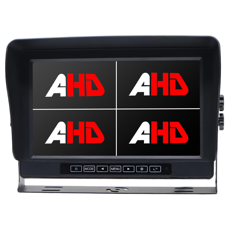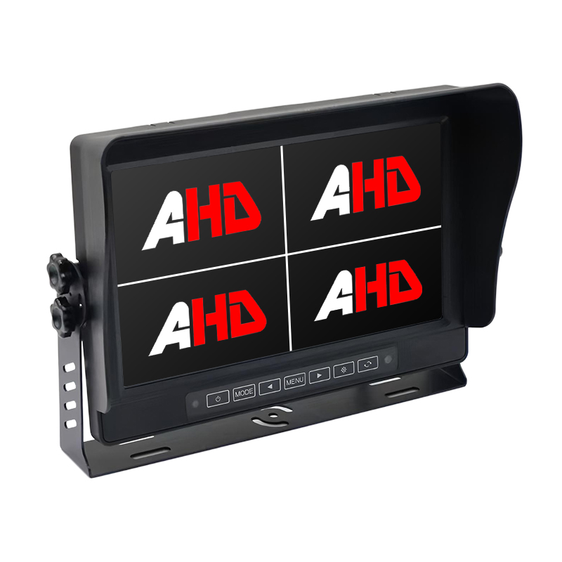 Carleader 10.1 Inch IP69K Waterproof 4CH AHD Inputs Quad Display Touch Buttons Vehicle Monitor made with aluminum alloy housing, IP69K waterproof and touch buttons design can make sure to operate the monitor well in harsh environment condition. 16:9 ratio and 1024 x 600 resolution, offer a clear view of vehicle's surrounding environment. 4CH AHD signal inputs with trigger wires, AHD inputs compatible with CVBS / AHD 720P / AHD 1080P cameras, NTSC / PAL auto switch.