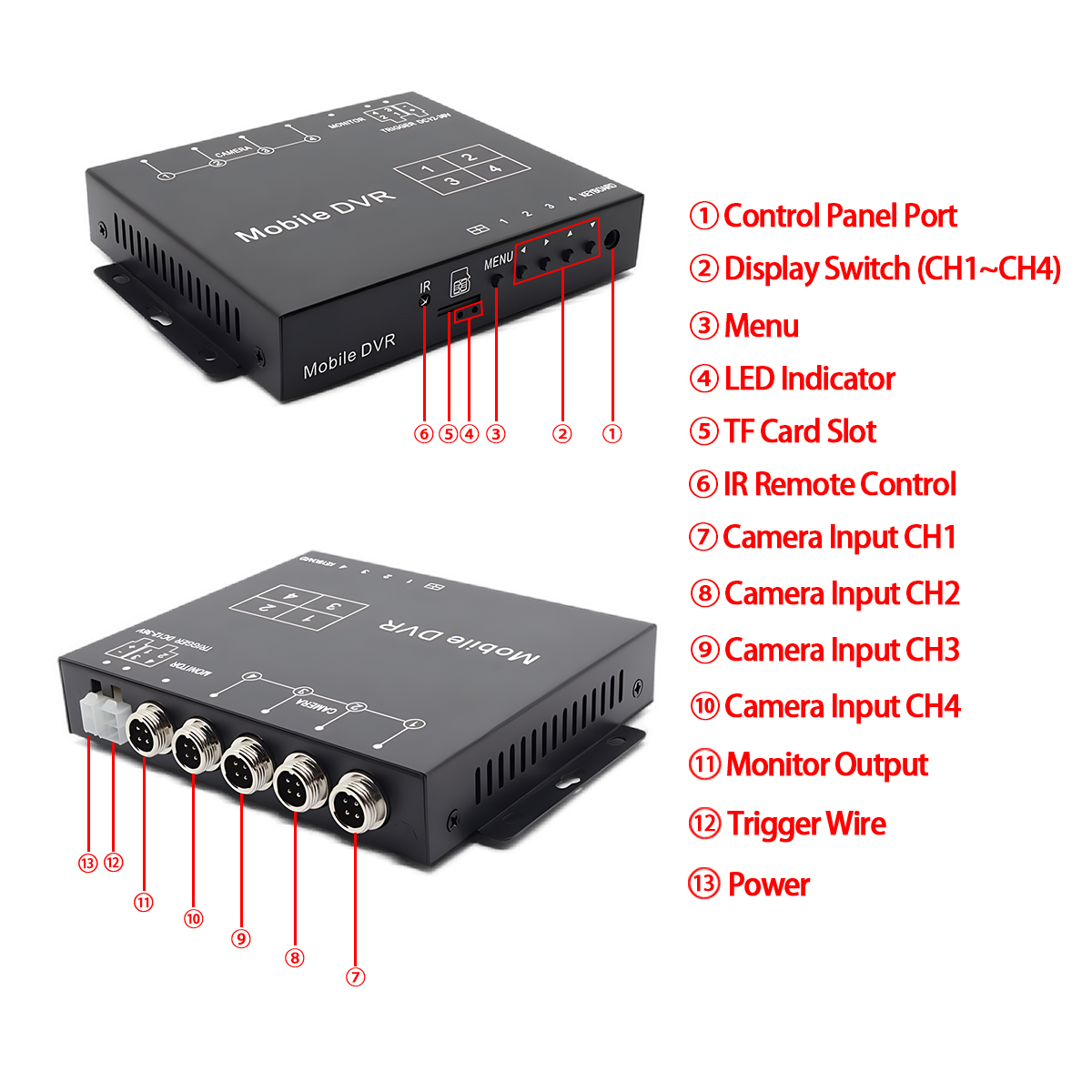 AI Blind Spot Detection Camera System Built-in Color Changing Warning LightUpgrade your vehicle surveillance with Carleader 1080P AHD Quad Split Display Video Processor Support Video Recording. This all-in-one solution combines a 4-channel video splitter and DVR, supporting 1080P/720P cameras and 512GB recording. 1080P AHD Quad Split Control Box With Recording Function is a complete 4-camera vehicle surveillance system, offering both live monitoring and crucial recording capabilities for security and evidence purposes.