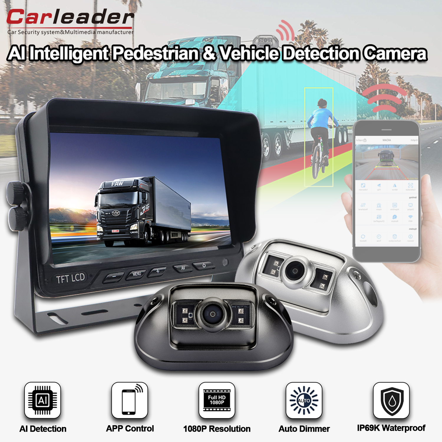 Support AI calibration setting with Cellphone via WIFICarleader AI BSD Pedestrian and Vehicle Detection Vehicle Camera System a high performance 7 inch AI BSD System which support pedestrian and vehicle detection and alarm the driver. camera with a USB port WIFI module, allow user to adjust AI function calibration and camera basic setting with cellphone via WIFI connection, including resolution option, detection area calibration, alarm audio type and volume, detection trigger sensitivity, detection object option, etc. Help user to fit their vehicle better via adjusctment.
