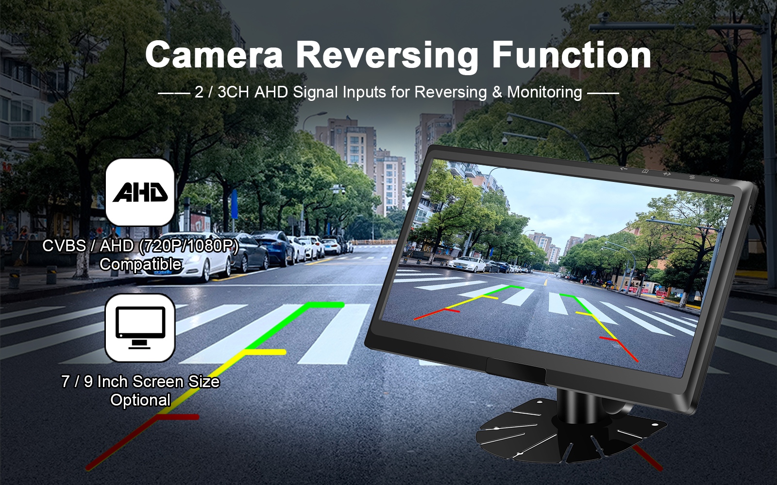 Multi-Camera Compatibility – Works with AHD (720P / 1080P) and CVBS cameras, supporting video inputs up to 1080P at 25/30fps (PAL/NTSC).