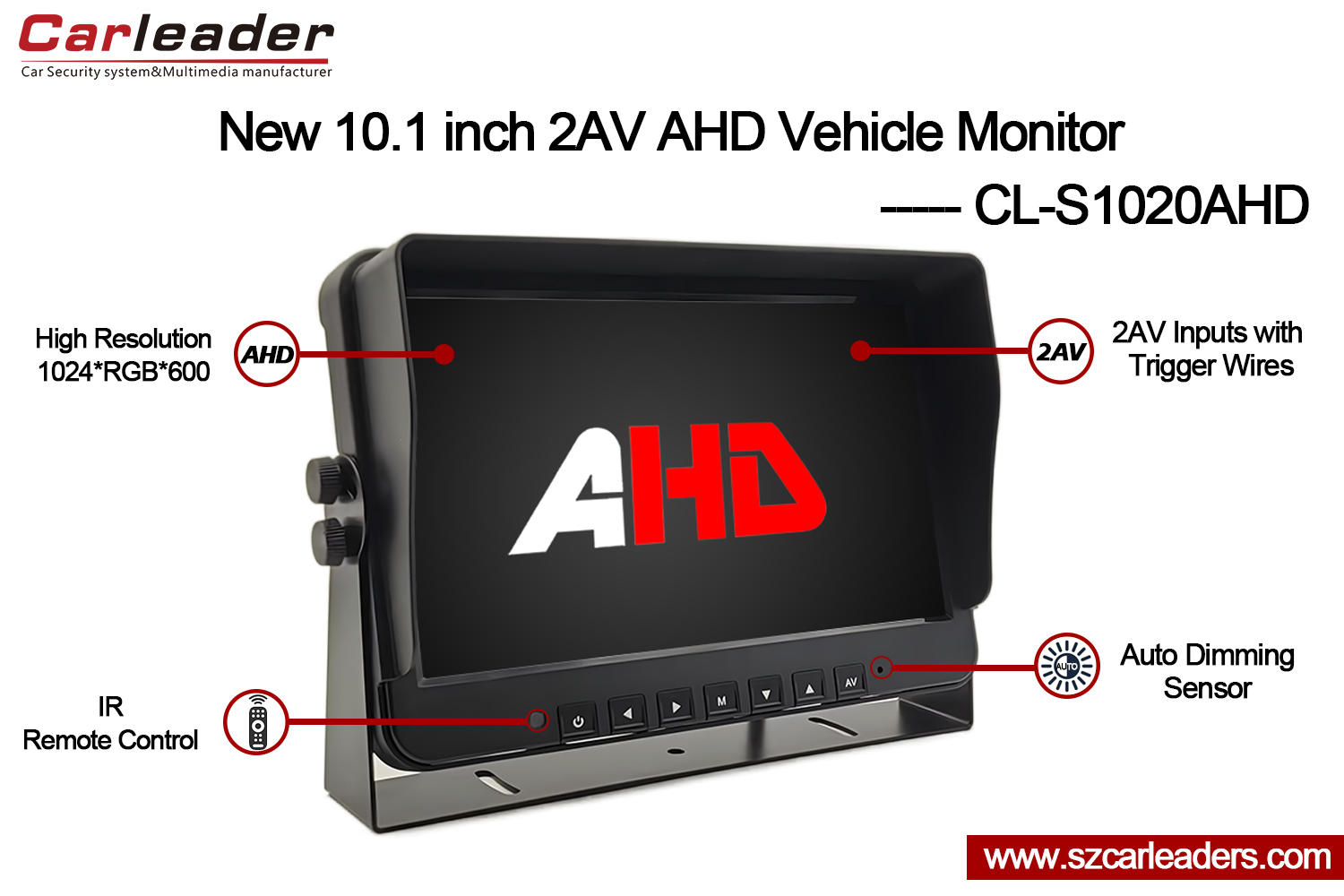 Carleader are proud to present you our 10.1 Inch 2CH AHD Inputs Vehicle Backup Monitor.